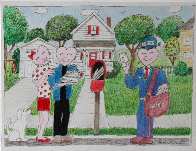 They are standing in front of the Heartdale Falls Public Library. She hopes